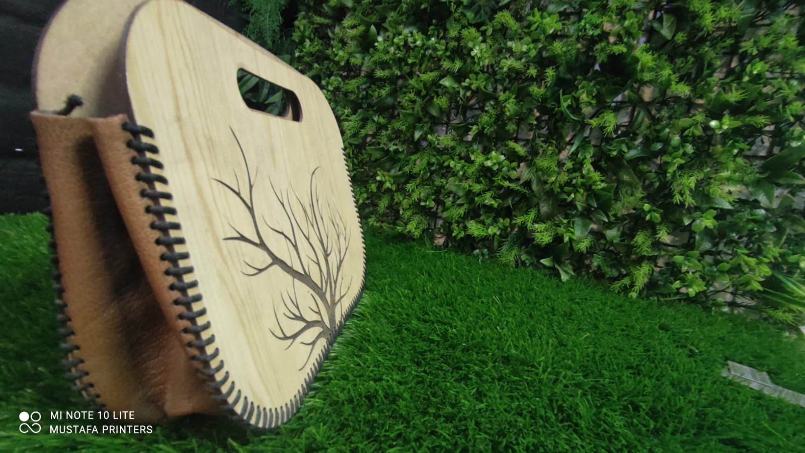 Wooden Handmade Laser Engraved Hand Bag Customized